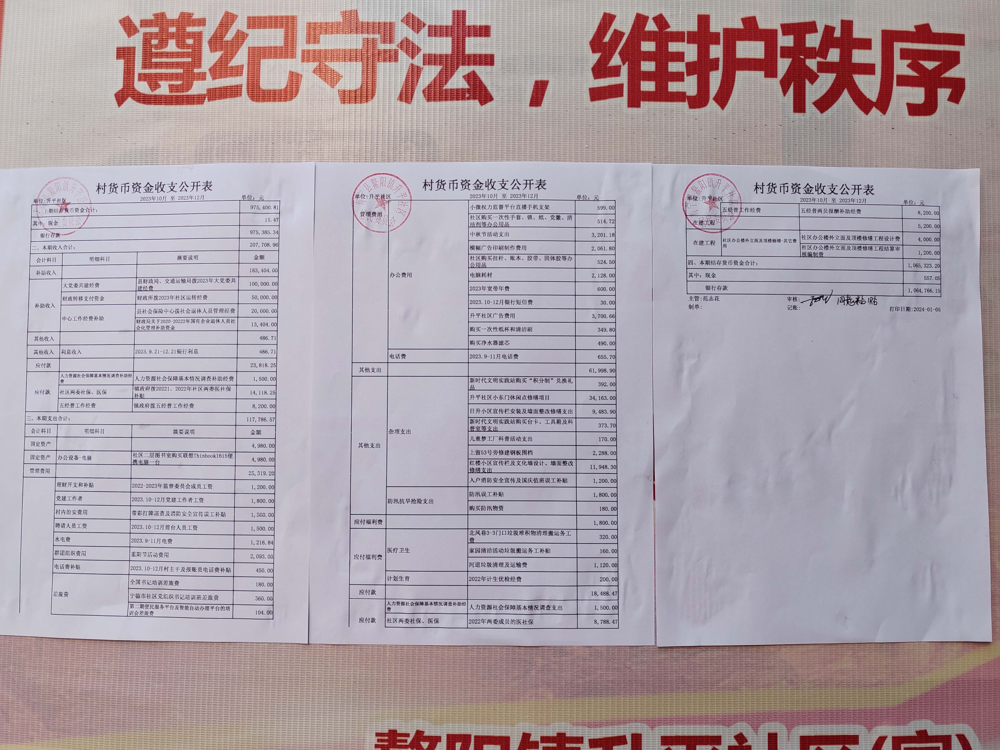 升平社区 2023年第四季度财务公开
