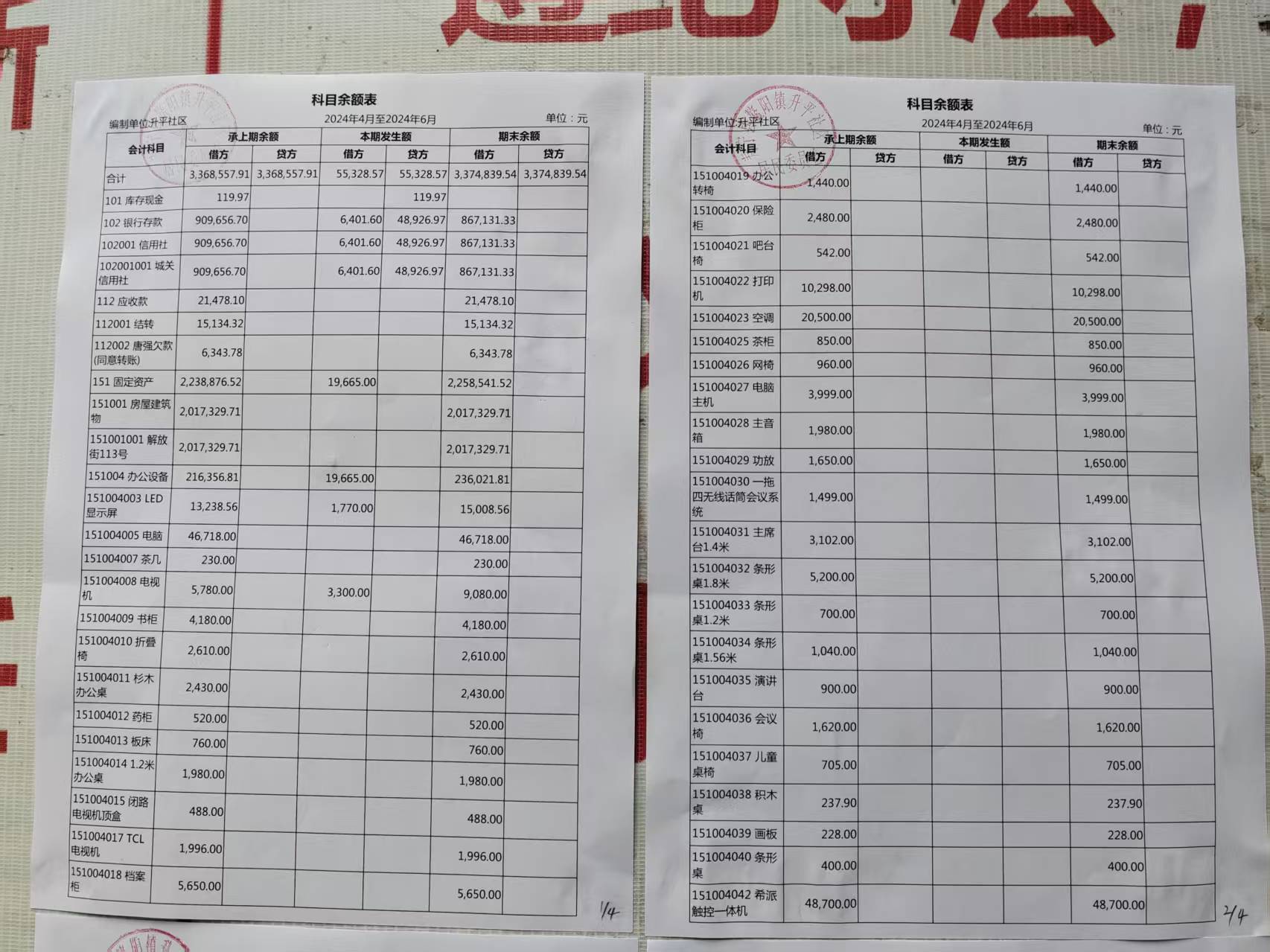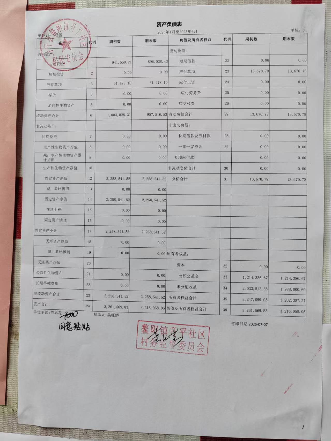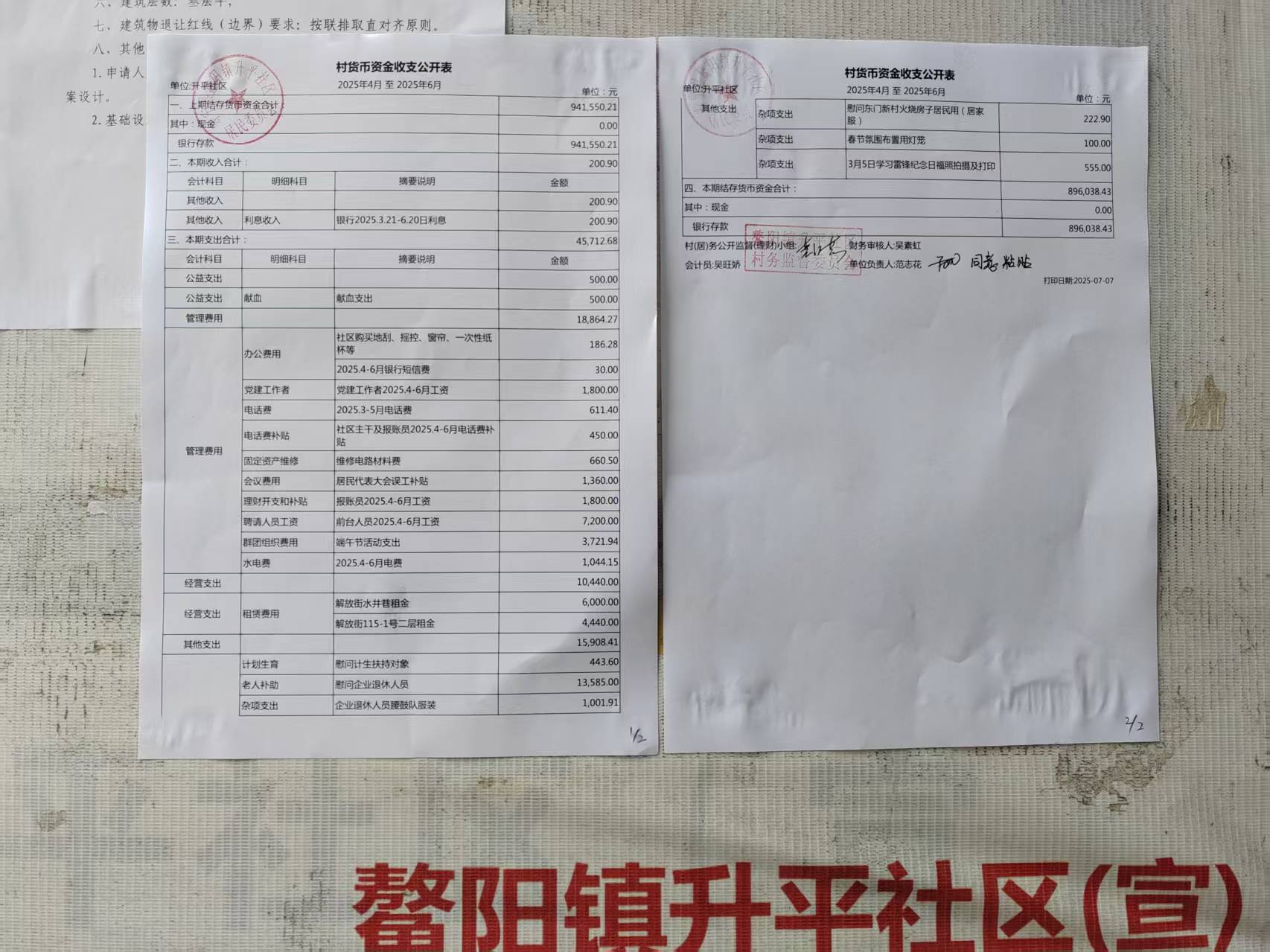 升平社区2025年第二季度财务公开