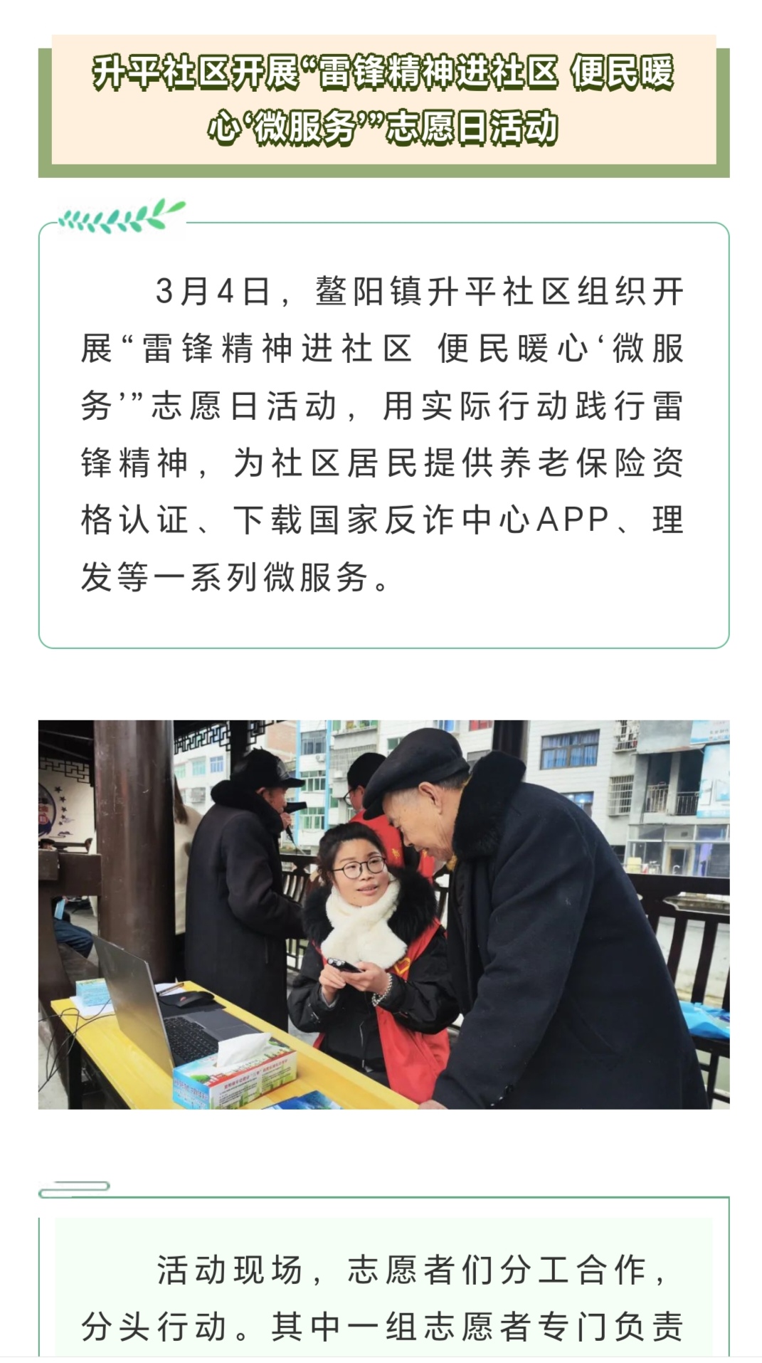雷锋精神进社区,便民暖心“微服务”