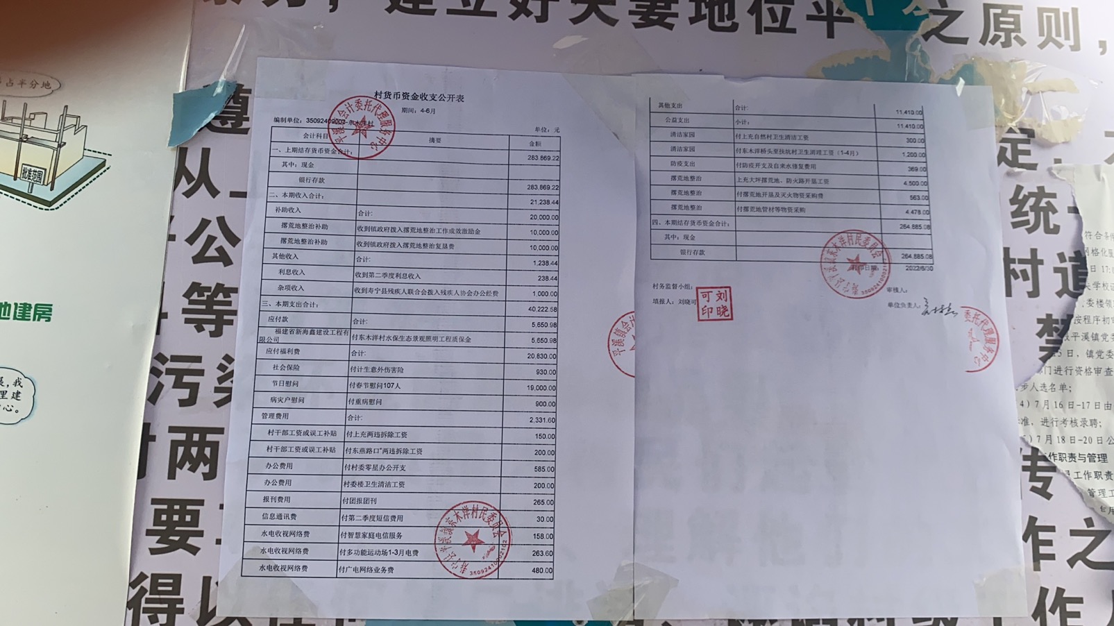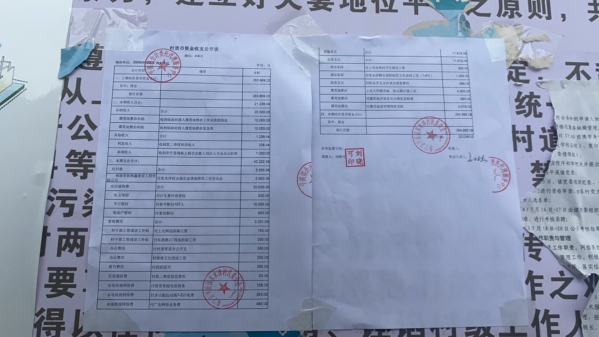 东木洋村4月一6月村货币收入资金公开表