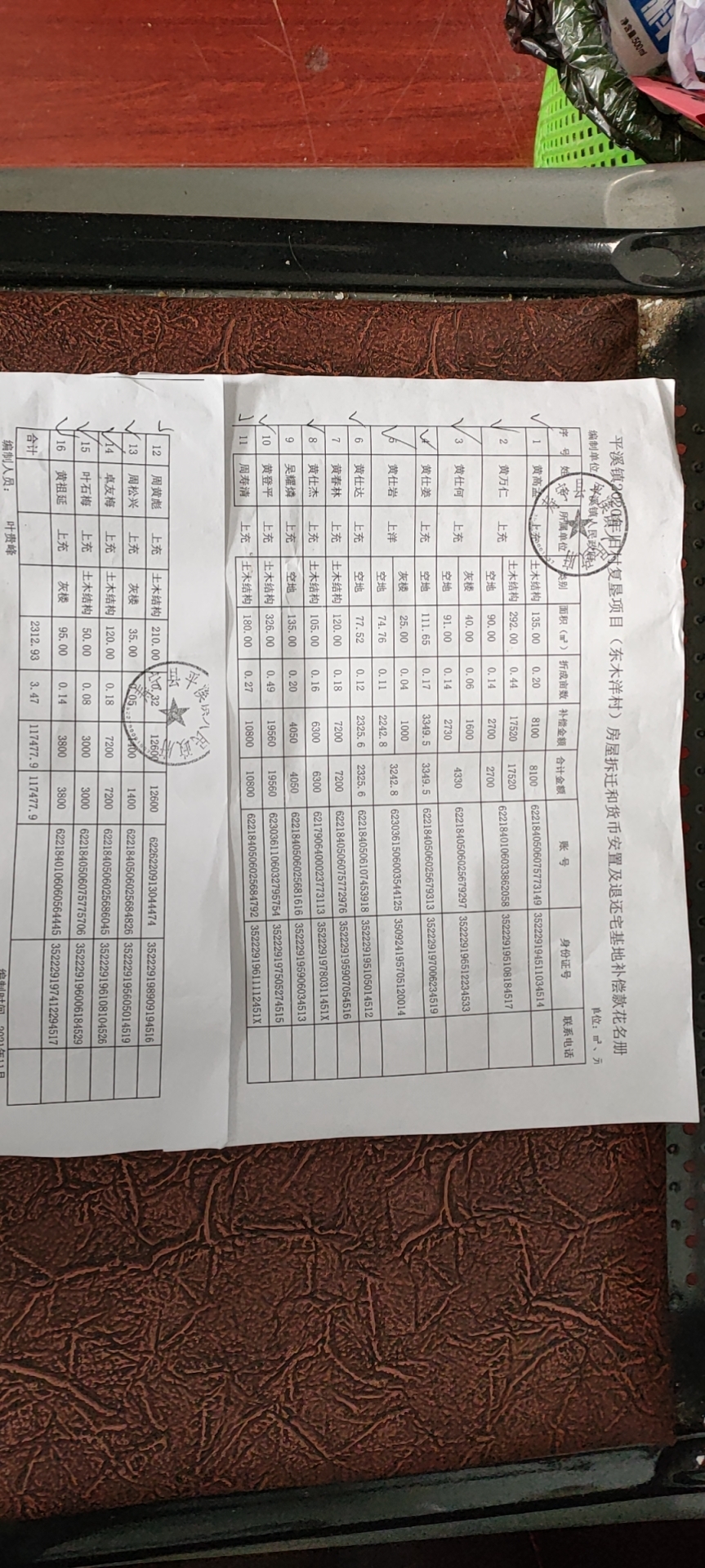 2020年东木洋村旧村复垦项目房屋拆迁和货币安置及退还宅基地补偿花名册