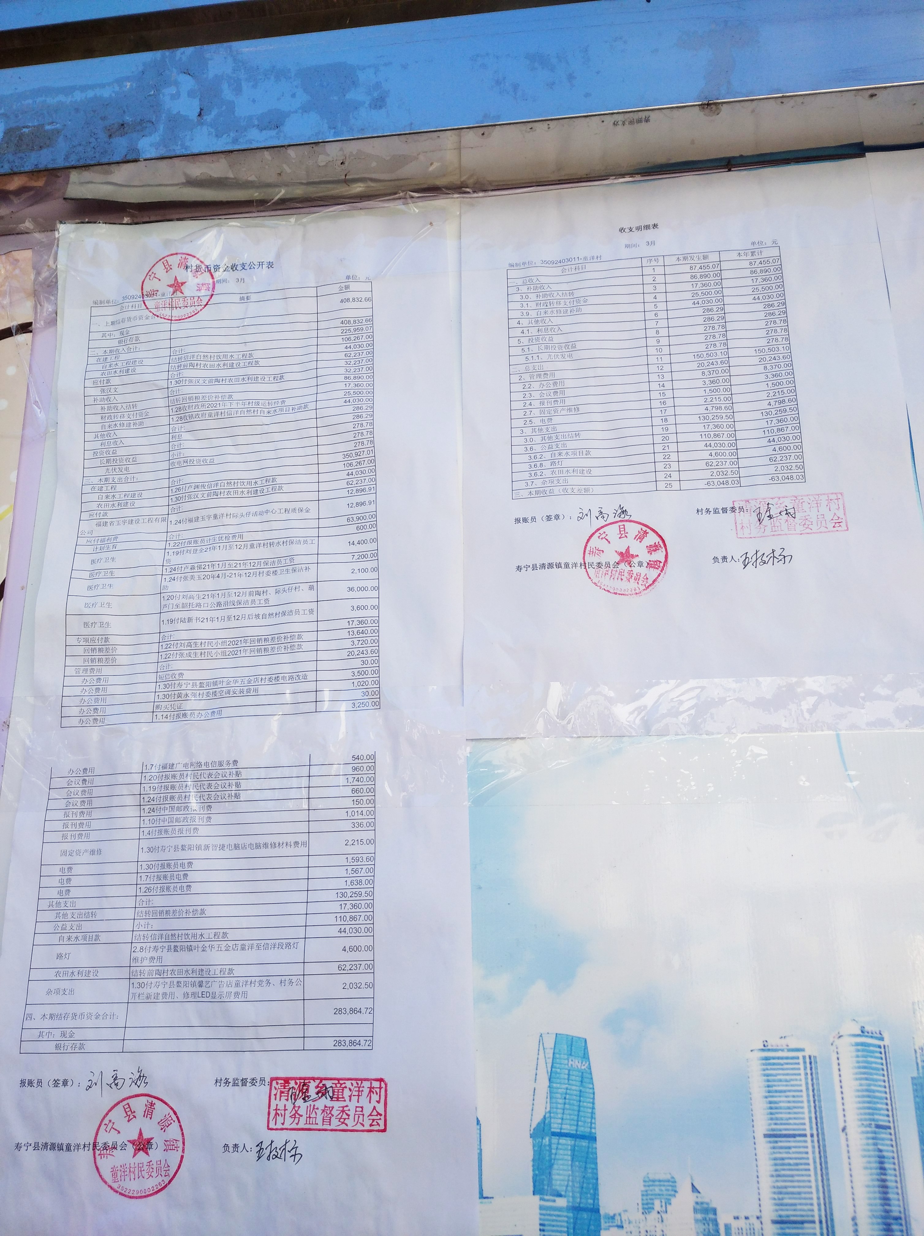 童洋村2022年度第一季度货币资金收支明细及公开表