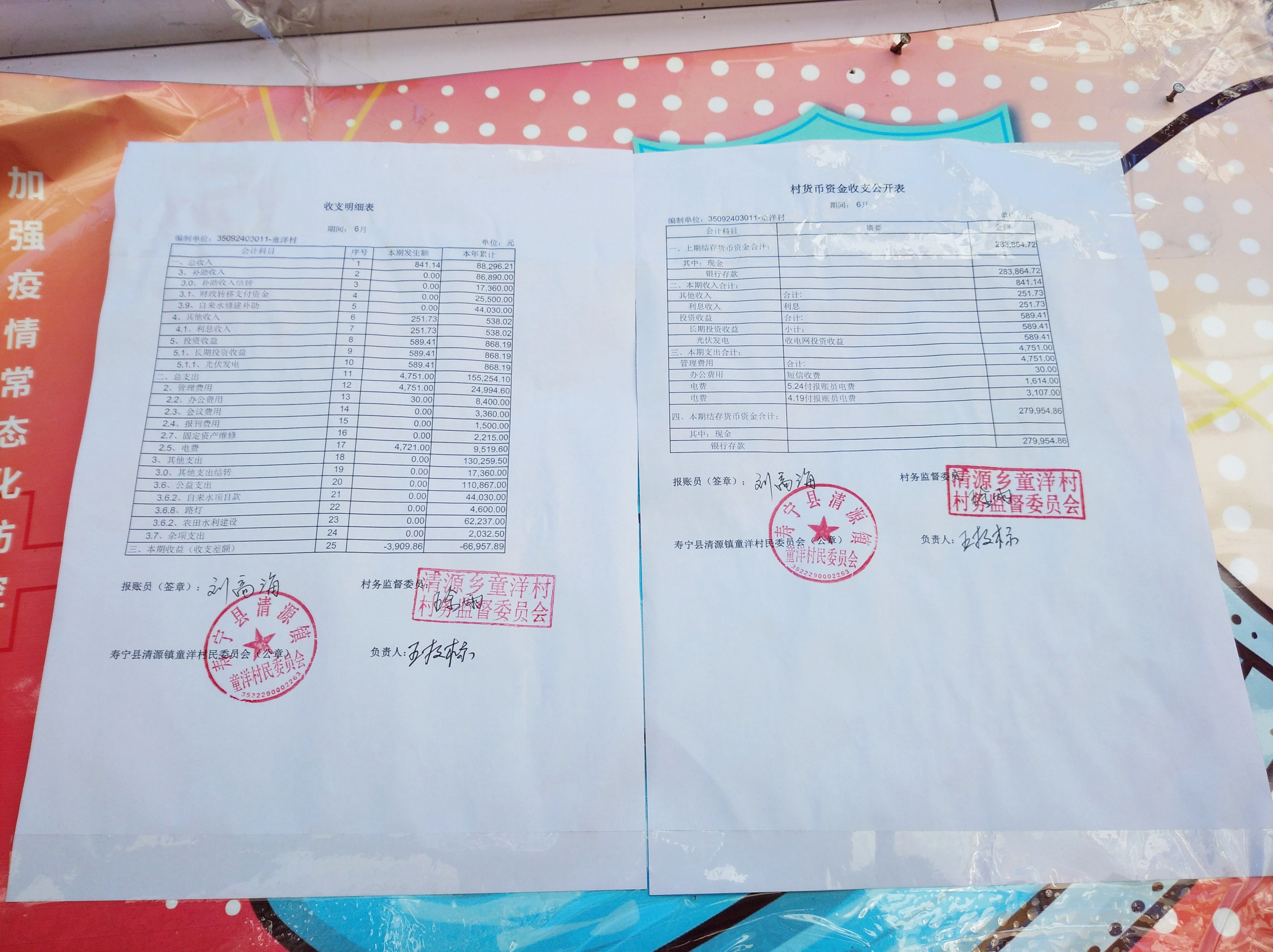 童洋村2022年度第二季度货币资金收支明细及公开表