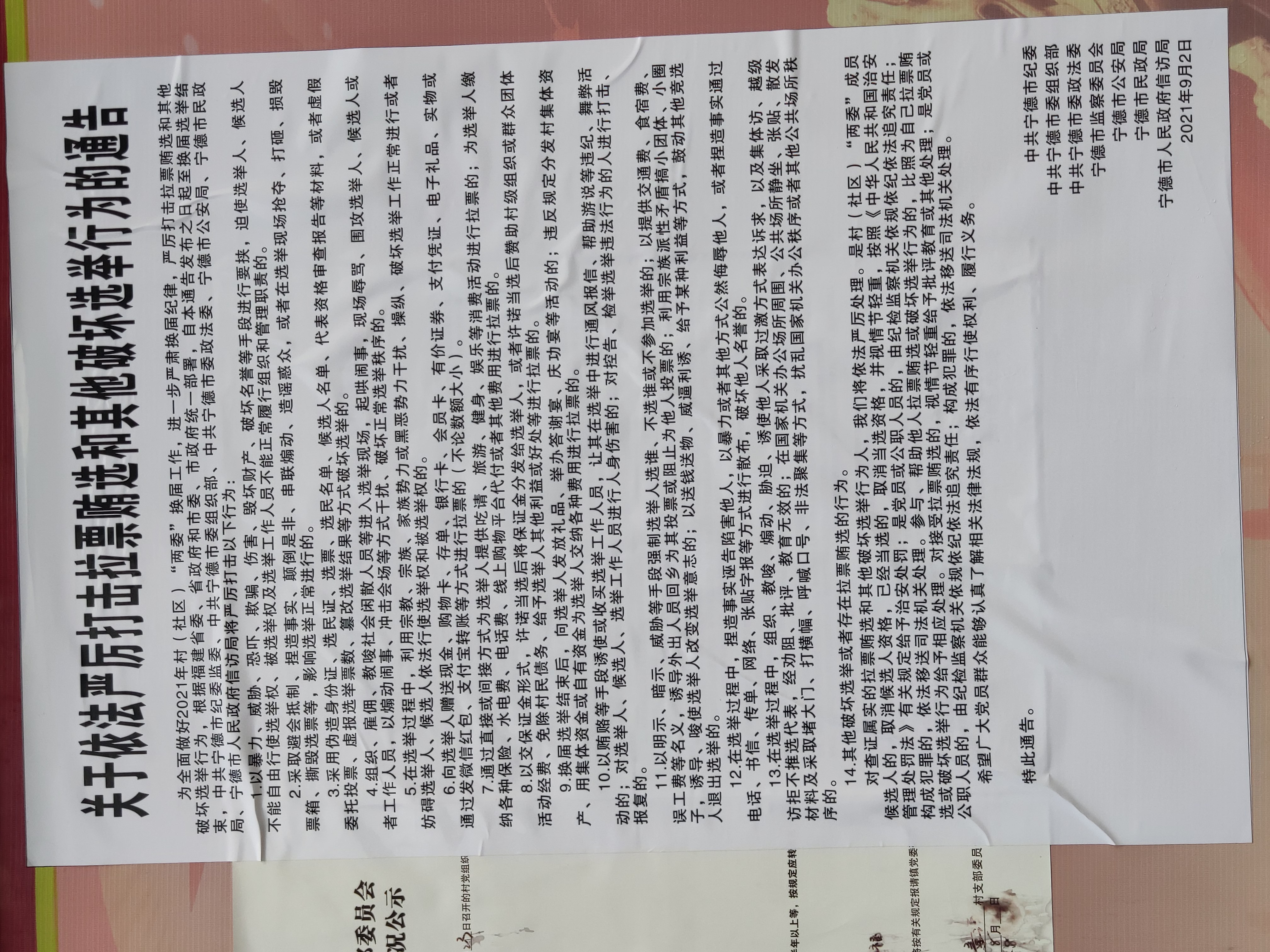 童洋村关于依法严厉打击破坏选举行为的公告