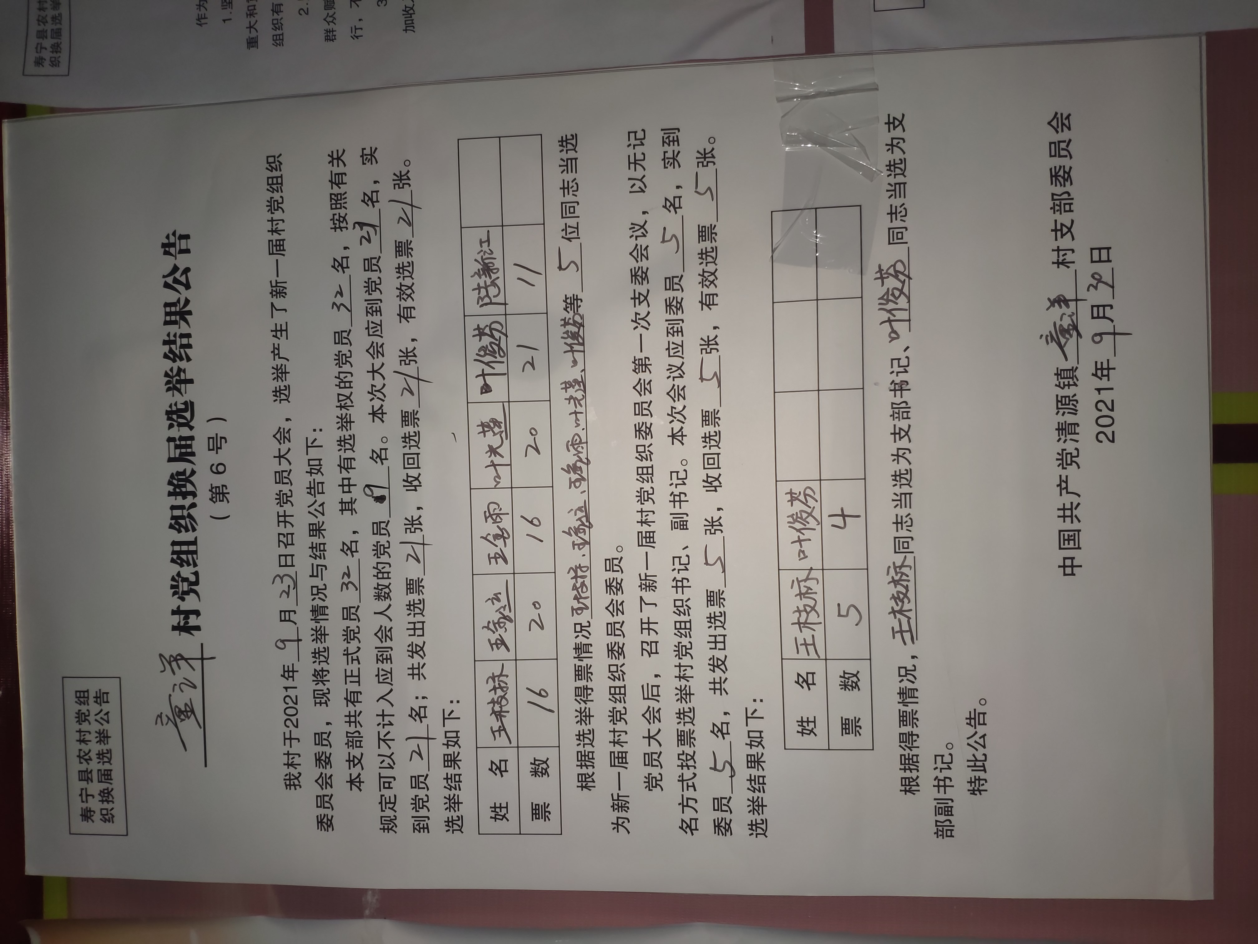 童洋村党组织换届选举结果公告、村干部履职承诺书、村干部辞职承诺书