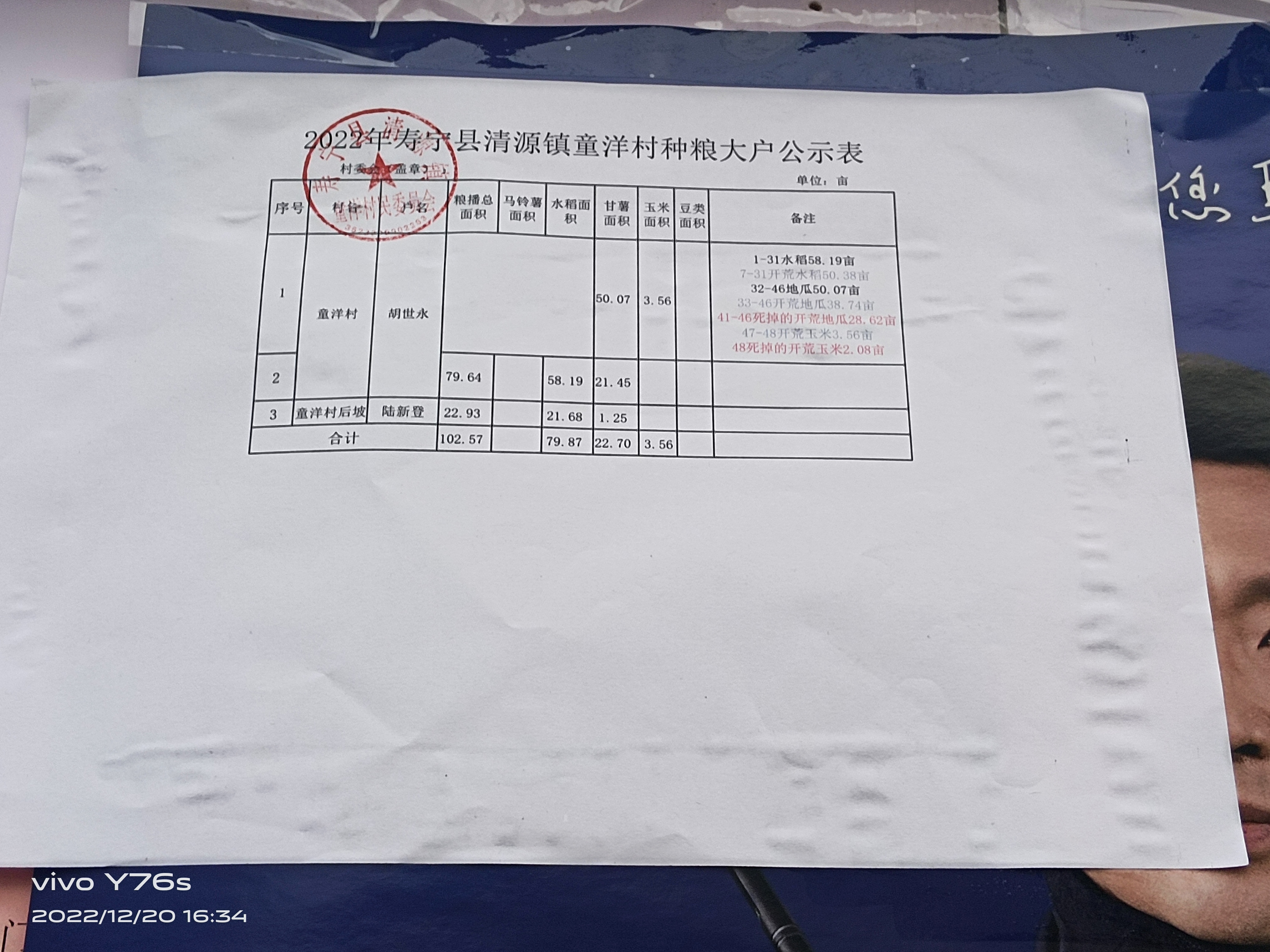童洋村种粮大户公示