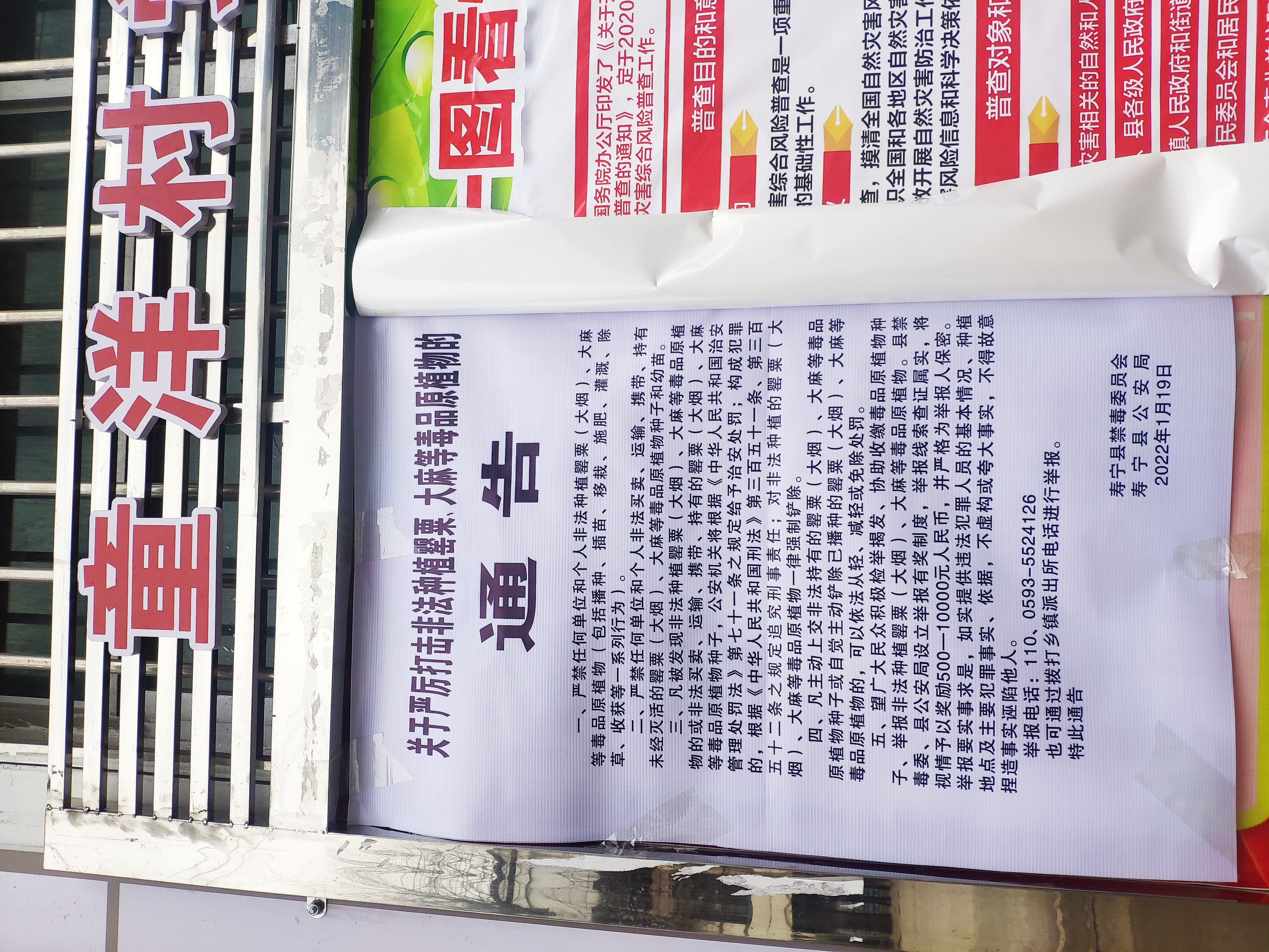 童洋村关于严厉打击非法种植毒品原植物的通告