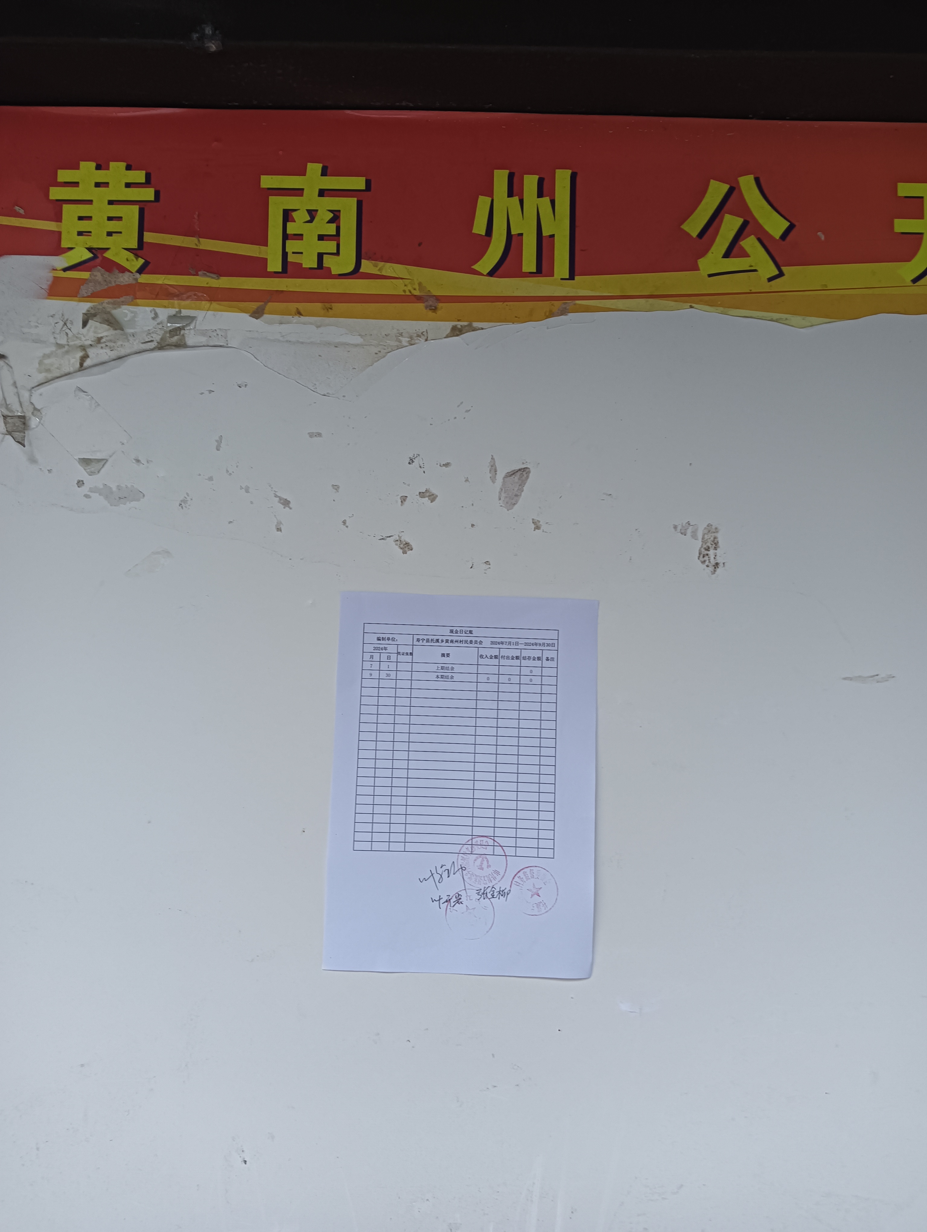 黄南州村2024第三季度月账目公示