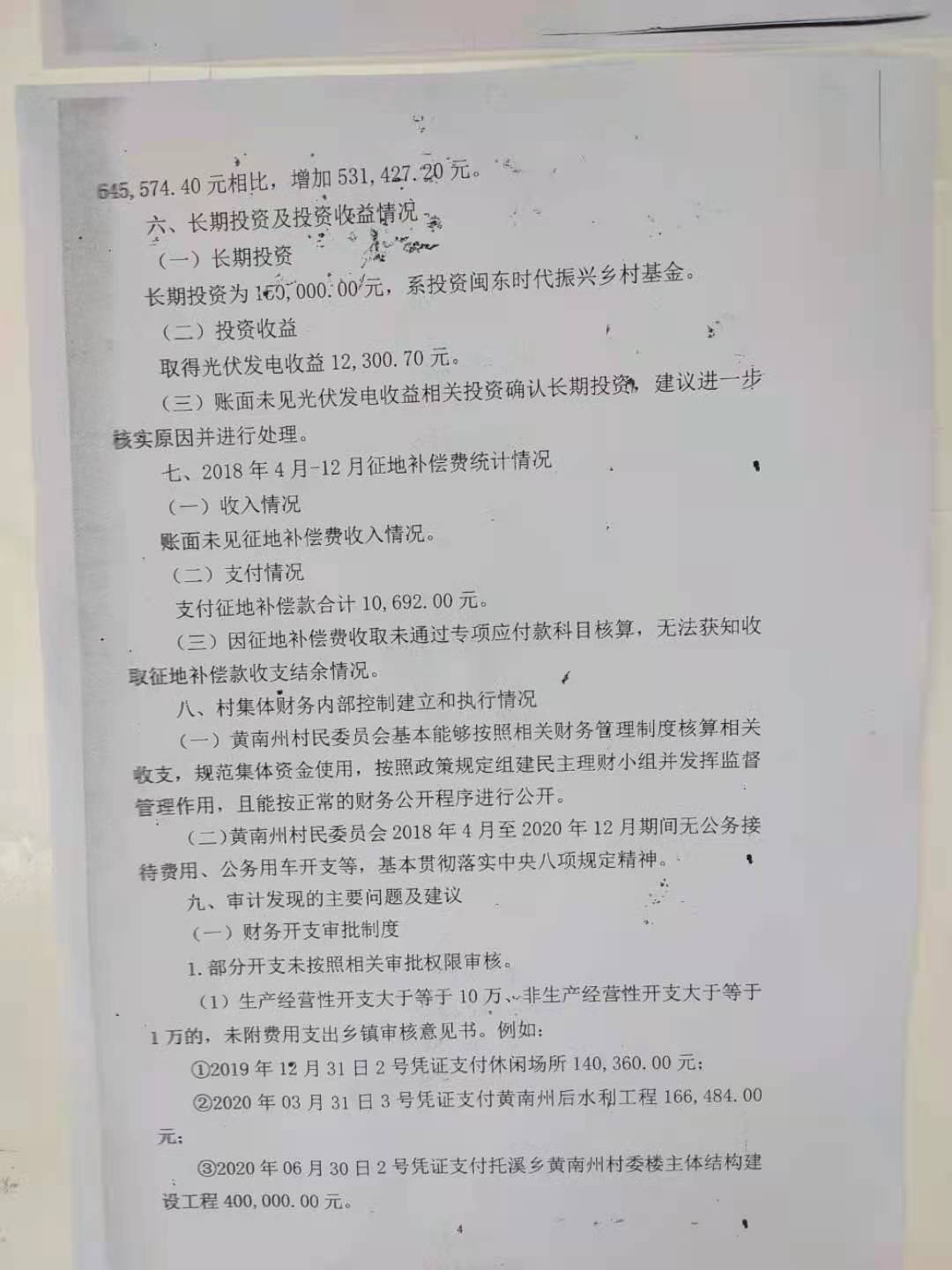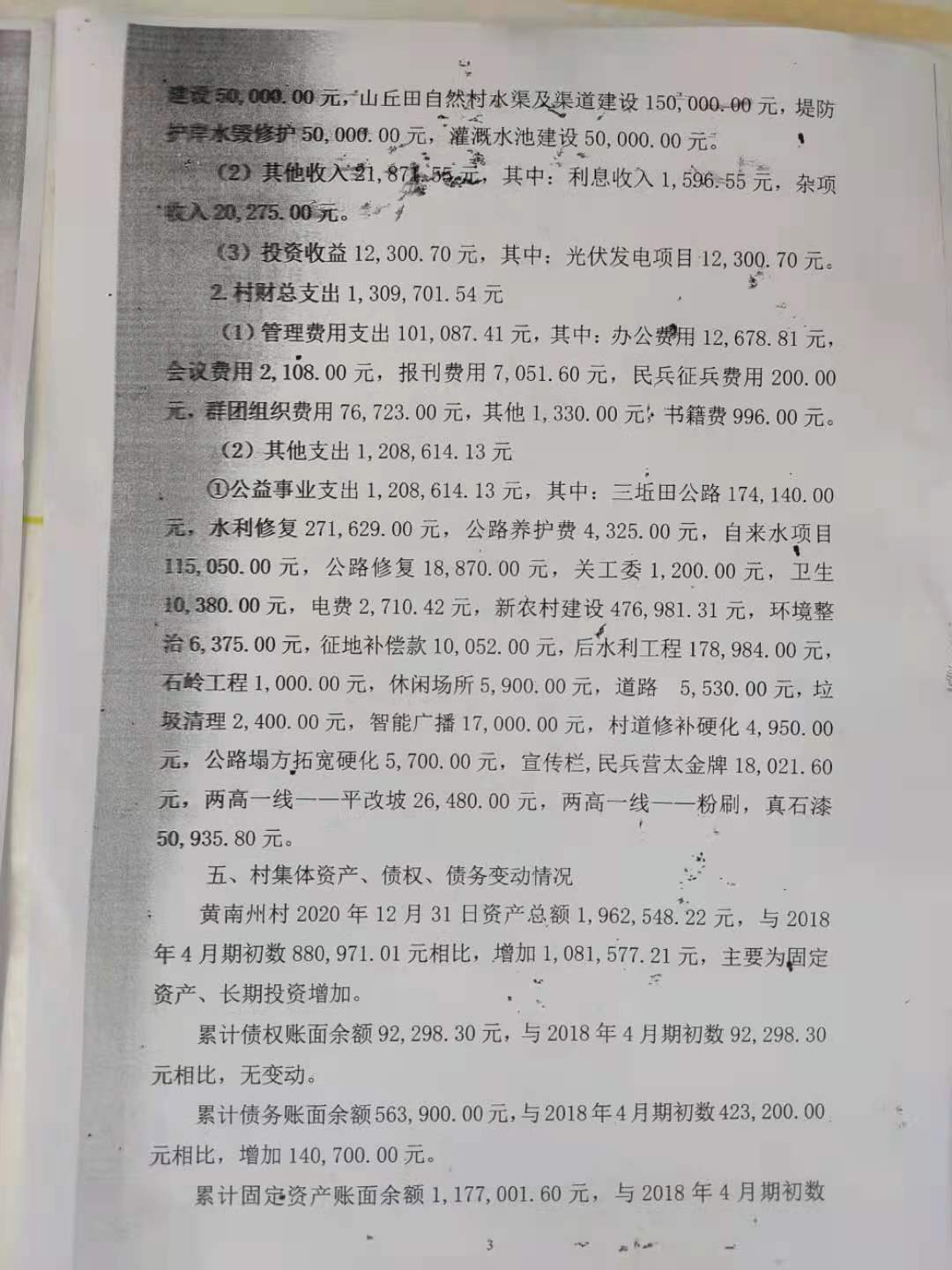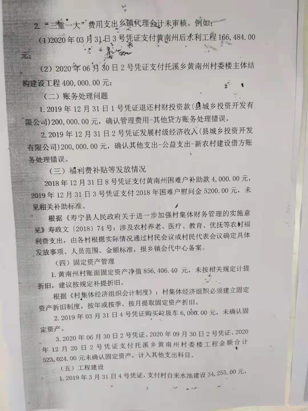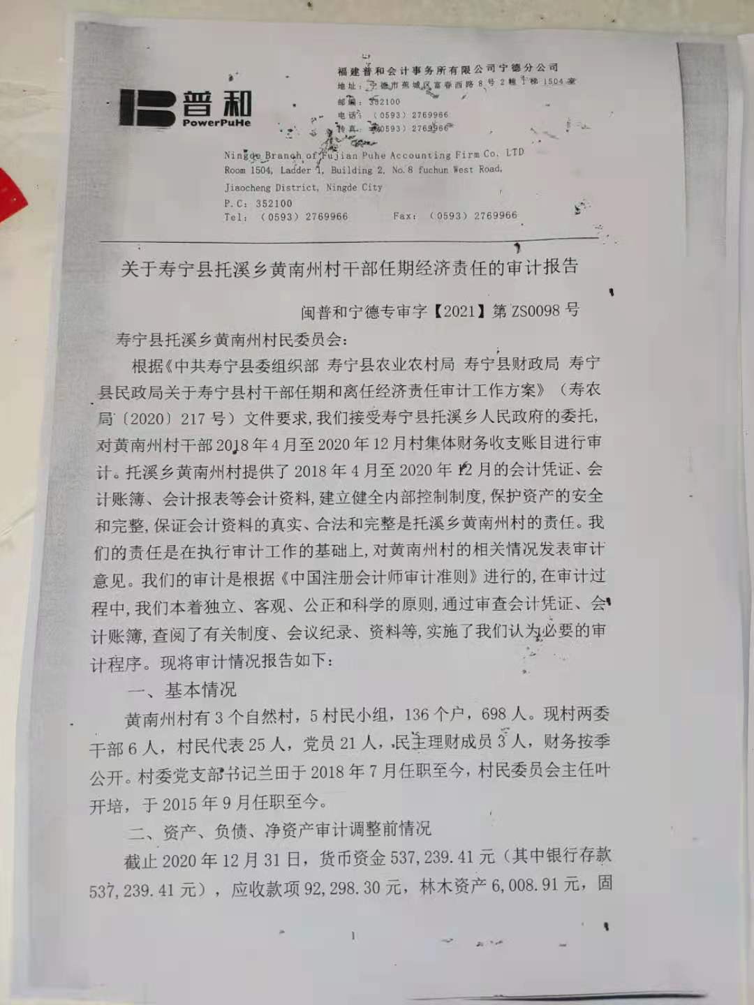 托溪乡黄南州村2018年4月-2020年离任审计报告公示