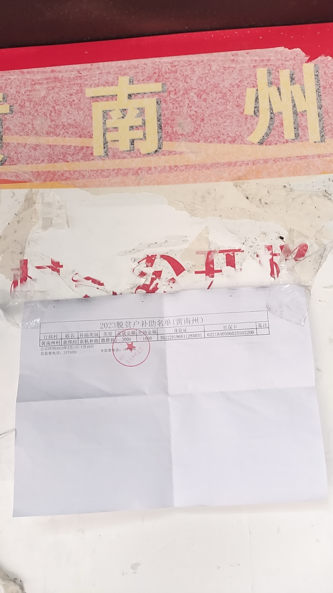 我村贫困户余邦应农机补贴公示