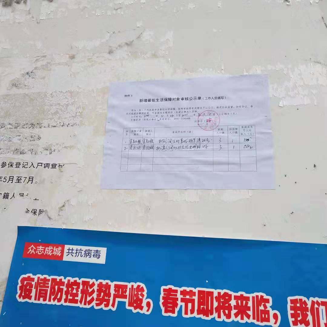 新增最低生活保障对象审核公示单