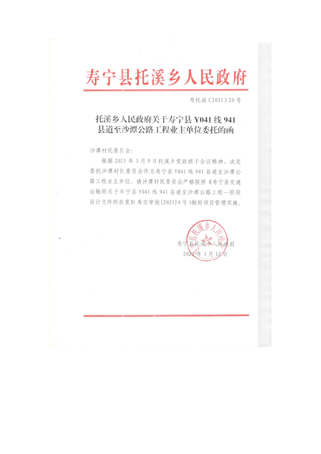 托溪乡政府委托沙潭村委会作为沙潭大桥建设业主单位
