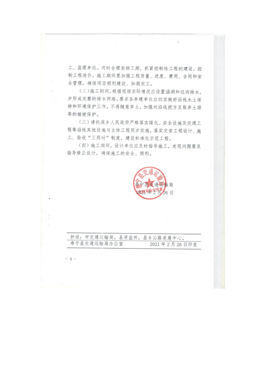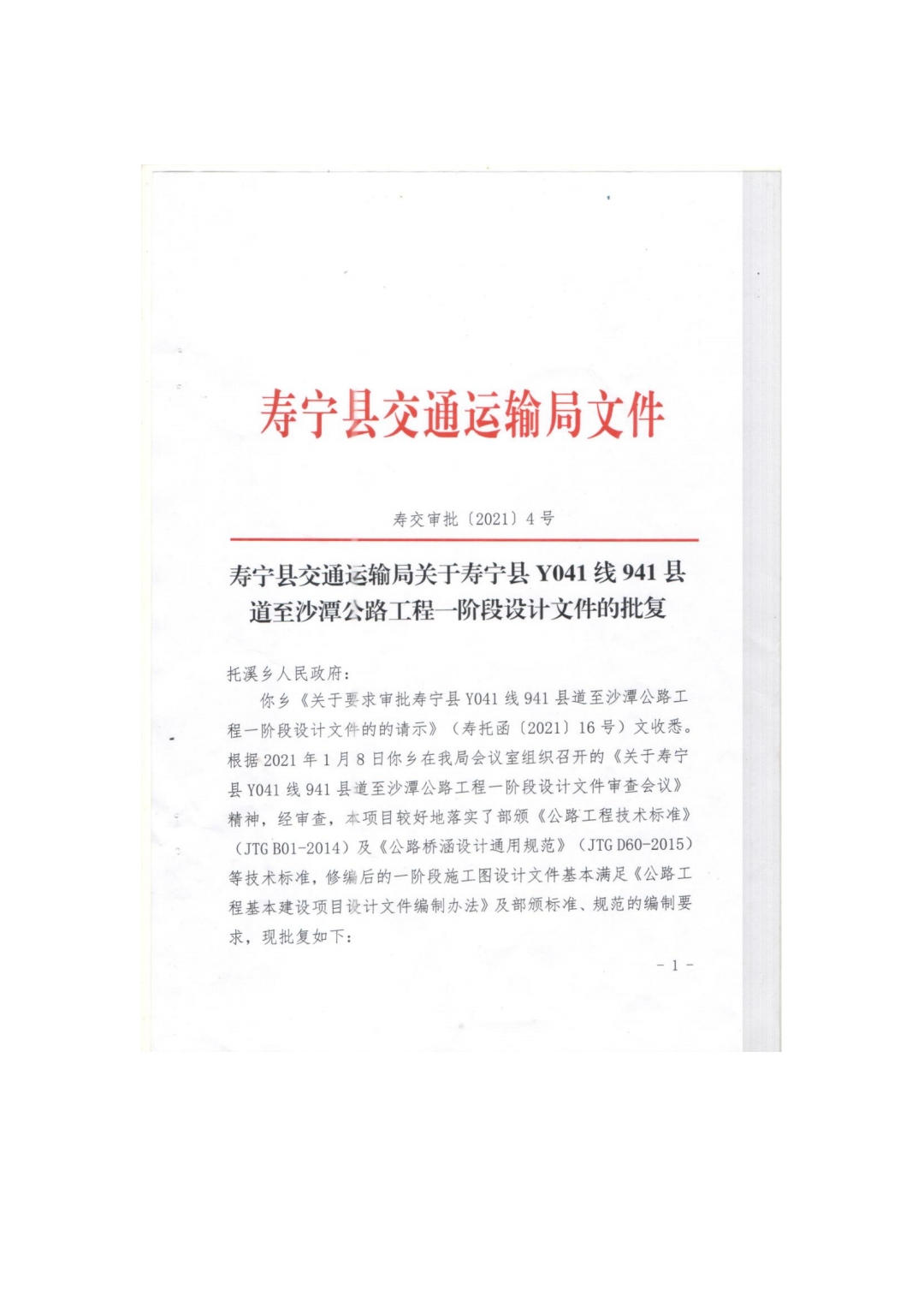 Y041线941县道至沙潭公路工程得到县交通局的批复