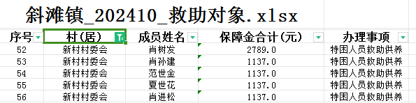 新村村关于10月份拨放特困人员救助名单