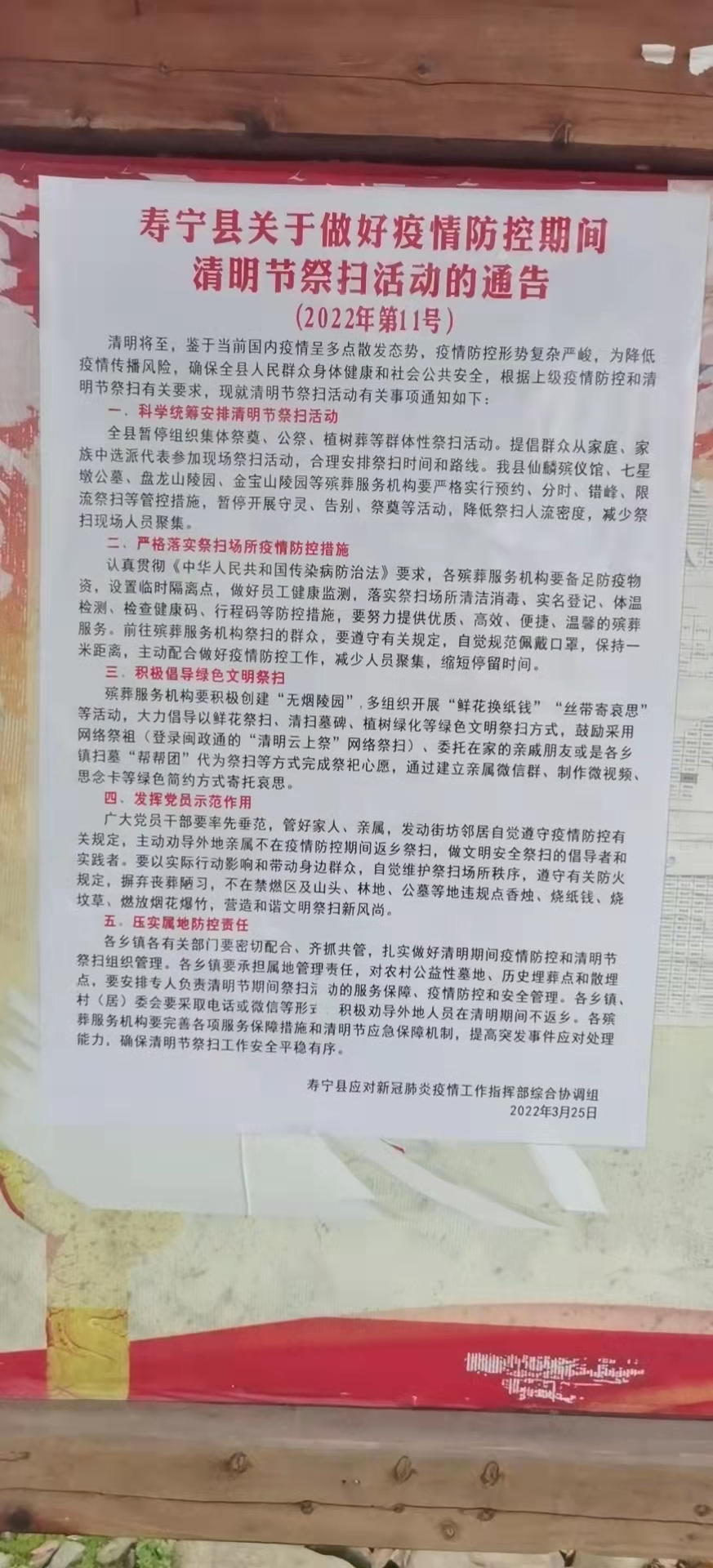 寿宁县关于做好疫情防控期间清明节祭扫活动的通告