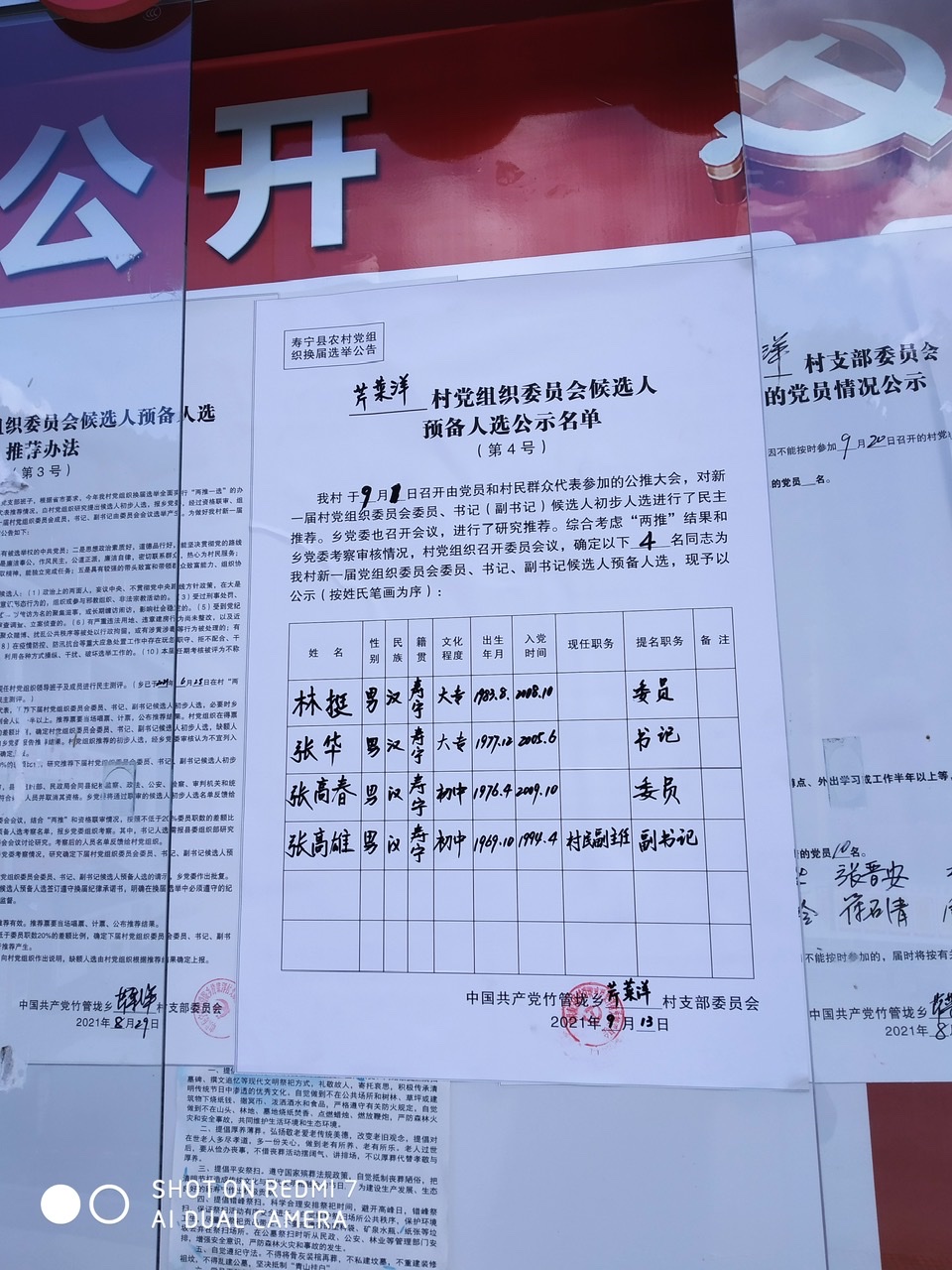芹菜洋村党组织委员会候选人预备人选公示名单