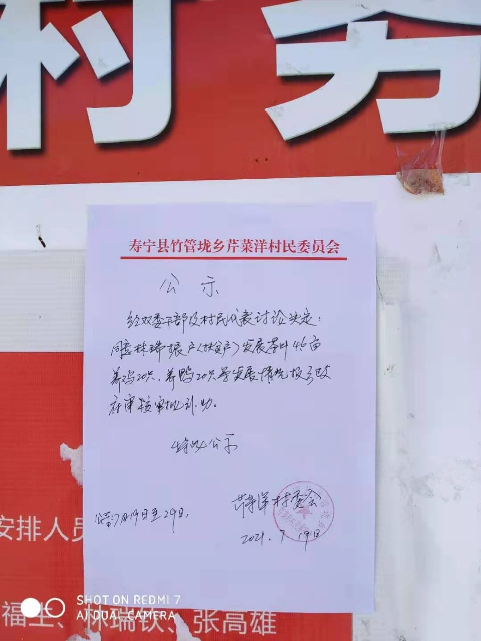 芹菜洋村林瑞振(扶贫)发展茶叶公示