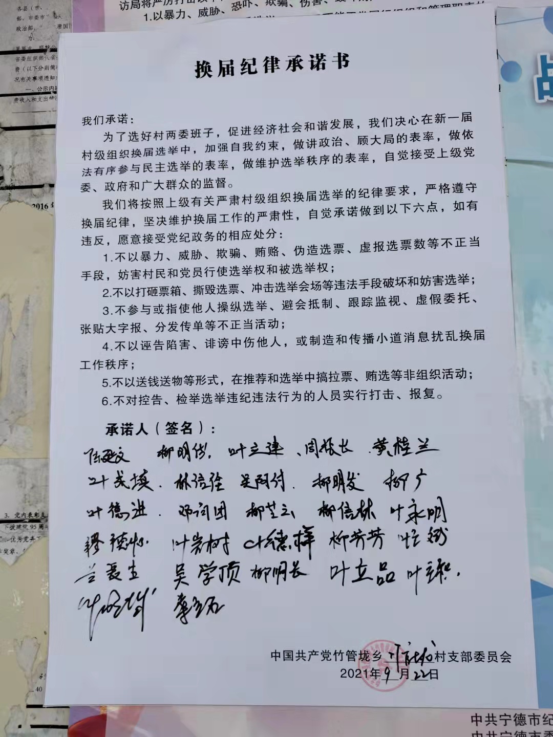 竹管垅村党组织换届纪律承诺书